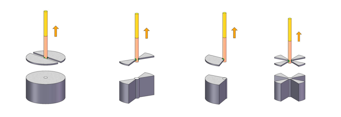 5、M-Jet高壓噴射注漿法采用獨特的多噴嘴鉆具,在面對各種復(fù)雜地層中可以選擇不同的噴嘴,組合形成不同的噴射形式。(交叉噴射、平行噴射、對稱噴射)